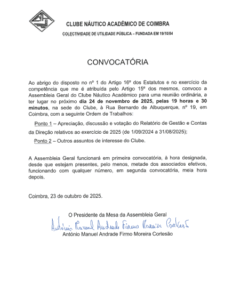 Assembleia Geral Ordinária | 24 de novembro | 19 horas e 30 minutos, na sede do Clube